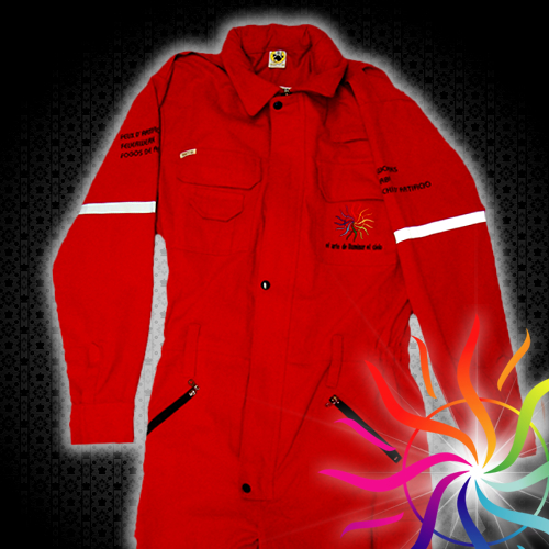 Overall de uso rudo, pensado y fabricado para uso profesional, con agarraderas, bolsas de seguridad, bolsas de uso rápido, clip para radio, reflejantes, gorra incluida en cuello, etc. Esta pieza maestra ha sido manufacturada con tela antiestática , y reforzada en lugares de común roce. Con logotipo en la parte frontal, slogan, y efecto de "Mariposa" en la espalda.